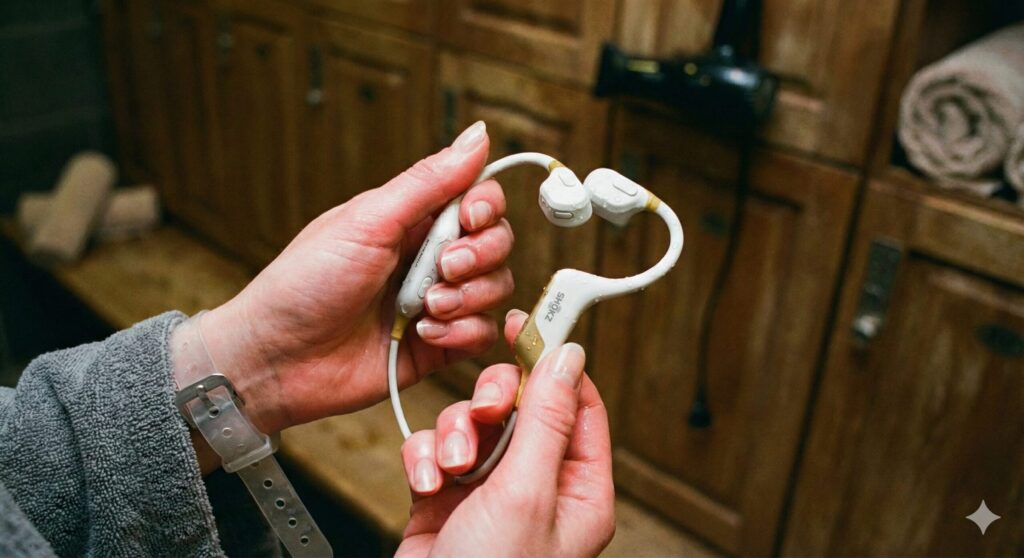 - サウナハットやタオルで「熱ガード」: 直射熱を避けるため、サウナハットでイヤホンごと覆いましょう。